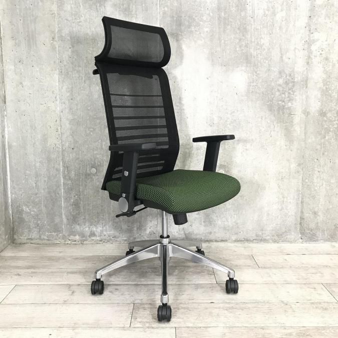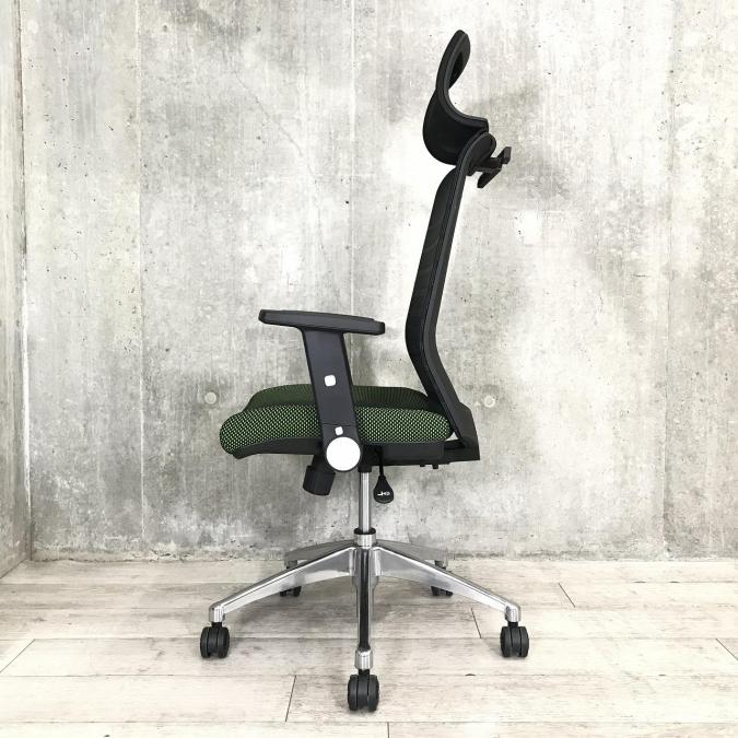 【ヘッドレスト付きメッシュチェア!】コイズミファニテック(koizumi)製 ■色:グリーン 可動肘付き- 千葉店
