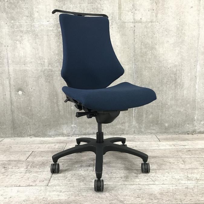 【在庫入替セール(本在庫限定価格)】 ■イトーキ製 エフチェア ネイビーブルー ハンガー付き【三次元フォルムが腰にフィット!】A00901391- 川崎店