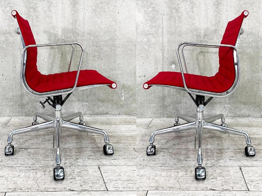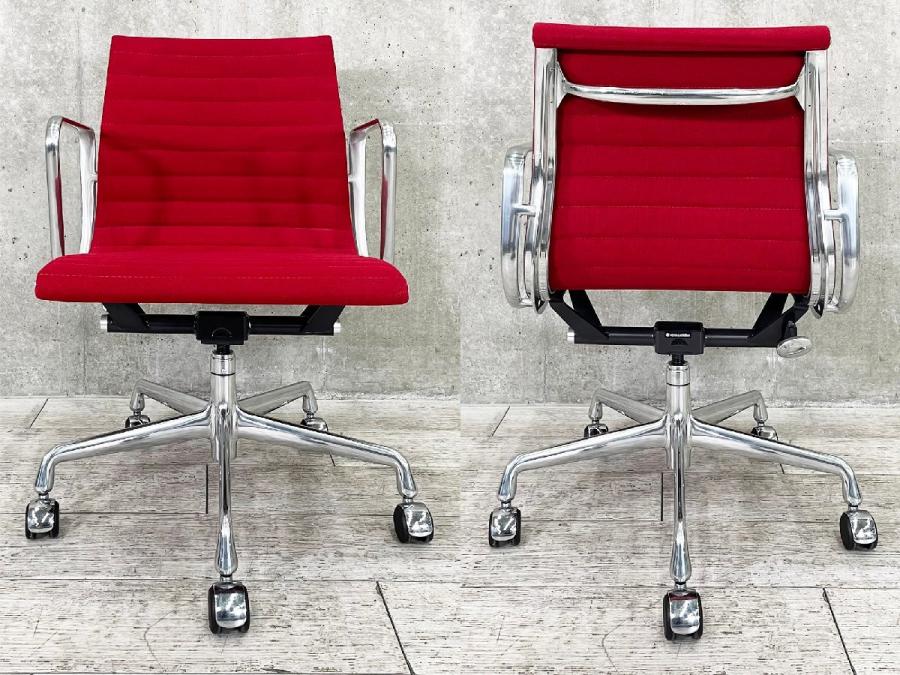 B)HermanMiller/ハーマンミラー イームズ アルミナムチェア ローバック レッド ファブリック- デザイナーズ家具センター