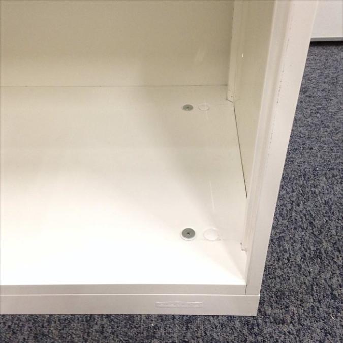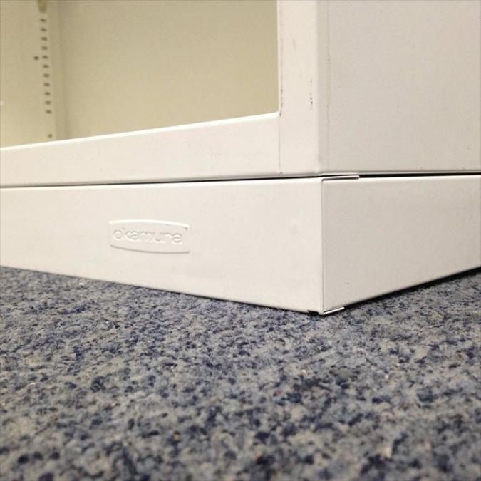 【オフィスの書類をスッキリ整理! 扉の無いタイプなので資料探しがラクラク!】■オカムラ(okamura)製 レクトライン(Rectline)シリーズ オープン書庫 ローキャビネット ■色:ホワイト ※扉外し商品のため外し跡がございます。