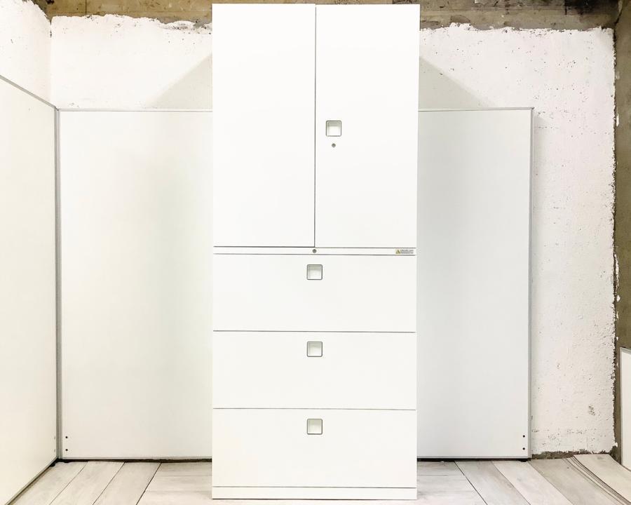 オカムラ レクトライン 3段ラテラル+両開き扉の書庫セット ホワイト シリンダー錠 鍵お付けします 人気商品【愛知・名古屋・豊田・静岡・浜松】