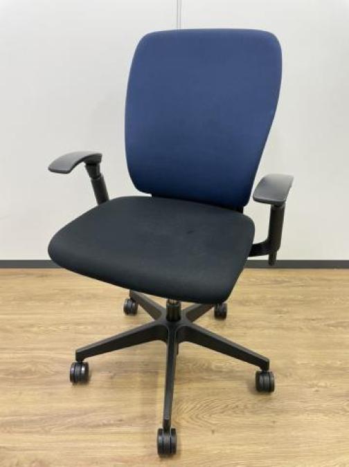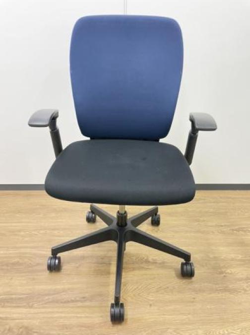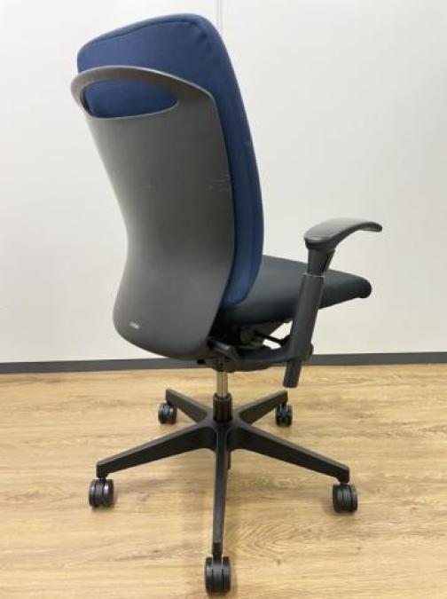 【背もたれ・座面使用感のすれあり】イトーキ製 人気高いフルゴシリーズ ブラック×ネイビーブルー 肘付きローバックチェア!!【関西倉庫在庫】