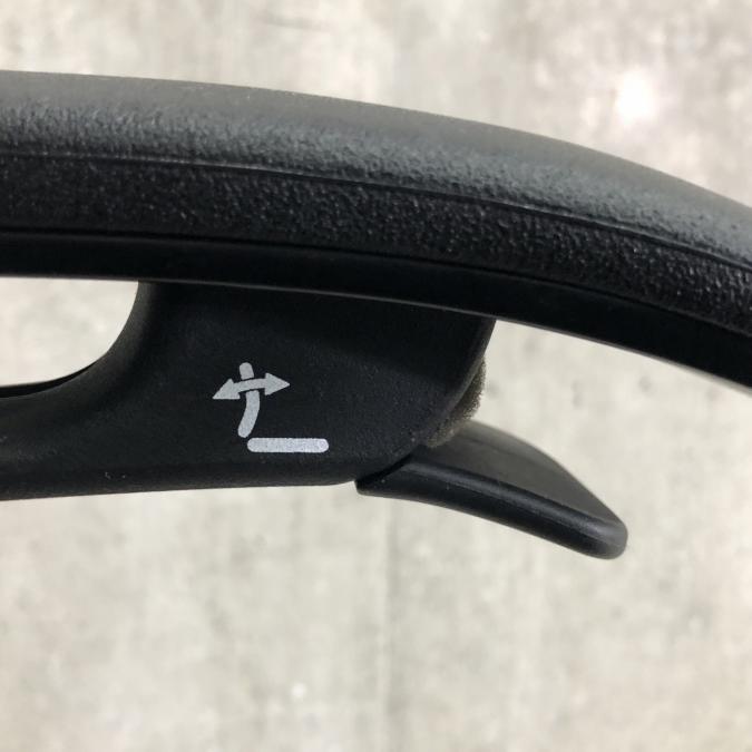 - ロッキングの強弱を調整するダイヤルがございます。体型に合わせてリクライニングの固さを座ったままで調整できます。