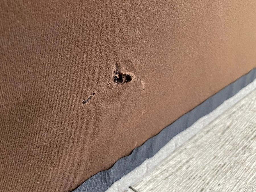 座面裏側の生地に小さな破れがあります。(写真9、10枚目参照)