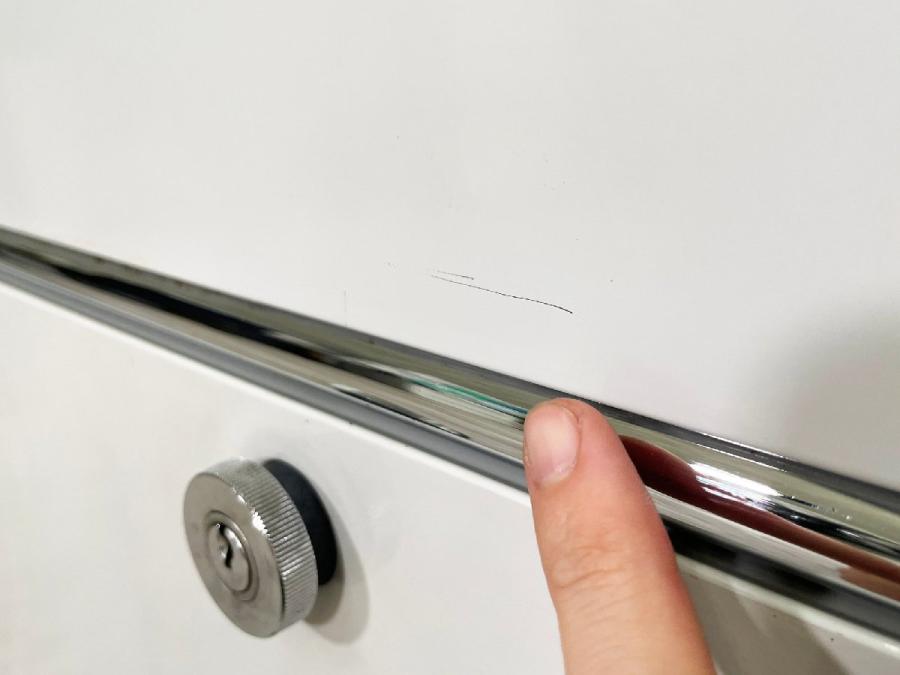 - 目立つ箇所あり傷・凹みが多数、深い傷・凹みが一部ある。(例、天板、正面、背部、サイド部分にある。)