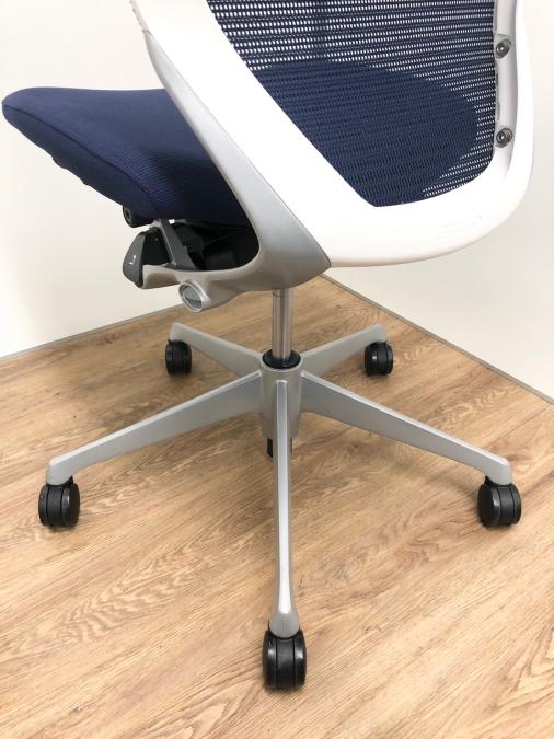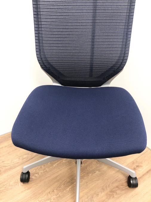 【オフィスの執務室、会議室におすすめ!】■オカムラ(okamura)製 バロン(Baron)チェア 肘無チェア ハイバック 背面メッシュ ■ダークブルー × ホワイトシェル【硬めの座面が大人気!国産メッシュチェアの代表格!】