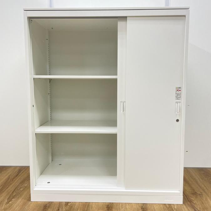 スライド式の扉のため導線を邪魔しません!使い勝手抜群の2枚引き違い書庫が入荷! ■オカムラ/レクトライン/ホワイト 2枚引き戸