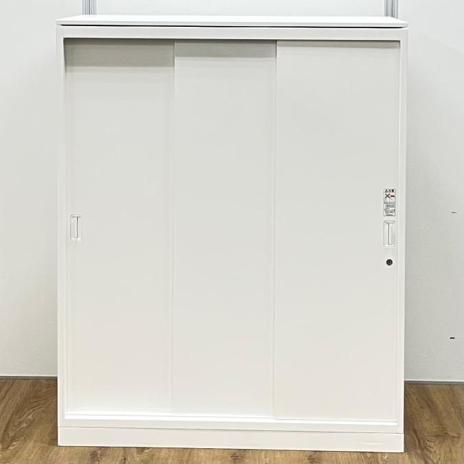 【レア】オカムラ製 大人気レクトラインシリーズ ホワイトカラー ホワイト天板付き 3枚引戸 引き違い書庫!!- 京都東寺店