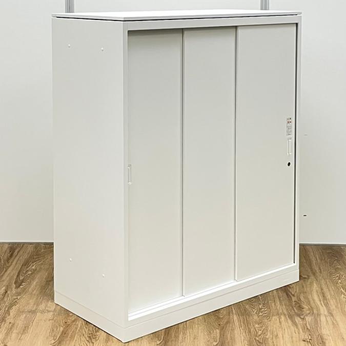 オカムラ製 人気レクトラインシリーズ ホワイト シリンダー W800xD450XH1050 3枚引戸 ※ベースなし 3枚引き違い書庫!!