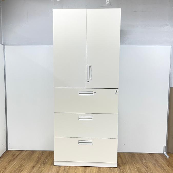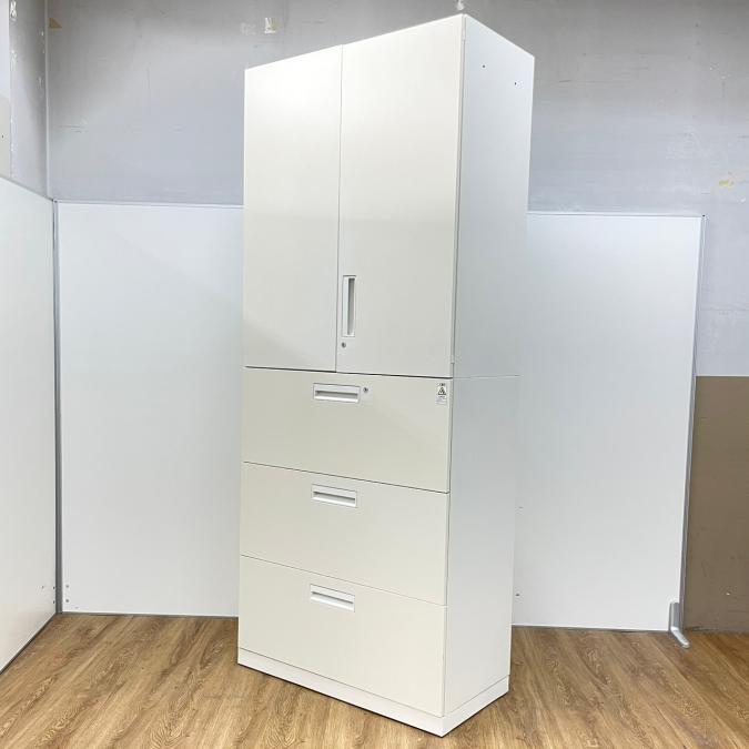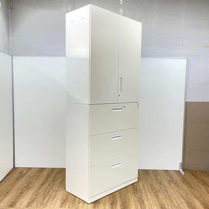 【収納量抜群の書庫セット!観音開き+引き出しタイプの人気の組み合わせ!】■コクヨ(KOKUYO)製 エディアシリーズ(EDIA) 両開き+3段ラテラル 書庫セット ハイキャビネット ■シリンダー錠 ■ホワイト
