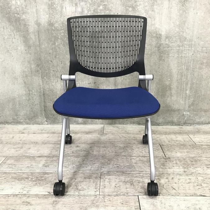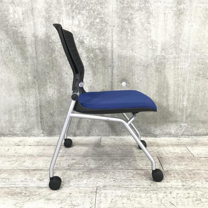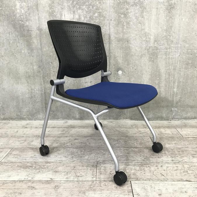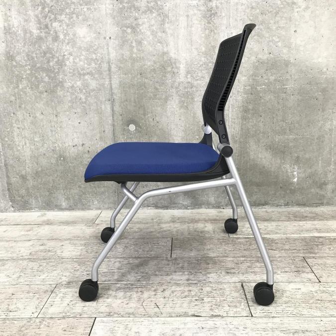【しなやかにワーカーを受け止める洗練されたデザイン!使わない時はネスティング収納!】■オカムラ(okamura)製 グラータ(Grata) ミーティングチェア ネスティング ■背面樹脂メッシュ ■ブルー
