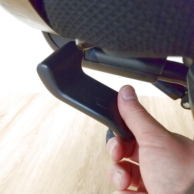 しかも、背もたれ両側のレバーを上下に動かすことによって、ランバーサポートの支点を上下に60mm動かすことができるので、体格に合わせて調整できます。