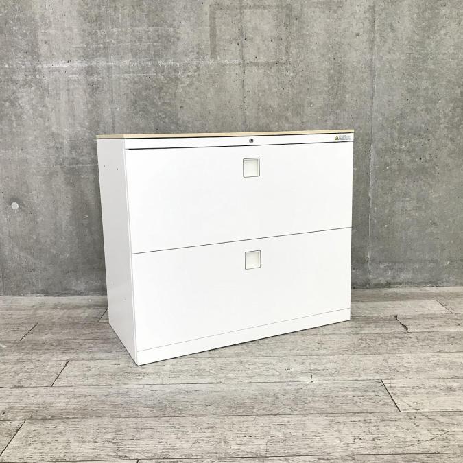 【天板付きでオシャに決めろ!!】◆オカムラ/レクトライン/ホワイト ◆天板付き/2段ラテラル 【弊社使用欄:A00917069】- 日本橋店