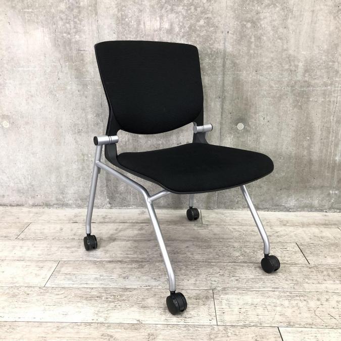 座りやすい会議用のネスティングチェア/オカムラ製/グラータ/ブラック- 川崎店