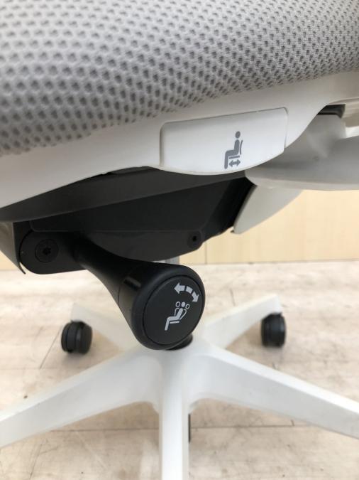 - 座面右下のダイヤル操作で、リクライニングの強弱調整が行えます。これまでのダイヤル式よりも、少ない回転数で、最弱?最強の調整が可能です。