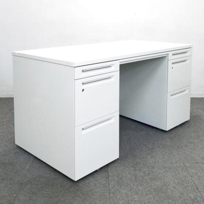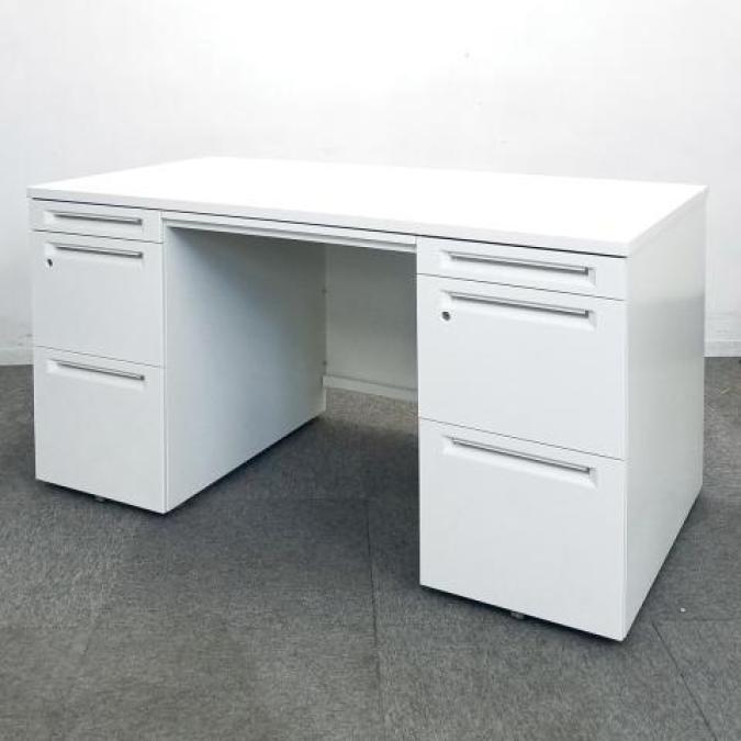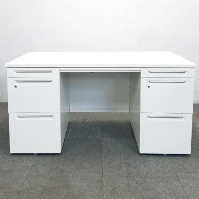 【圧倒的ボリューム!】上長席などにおすすめ!オカムラ/アドバンス/ホワイト/両袖机- つくば店
