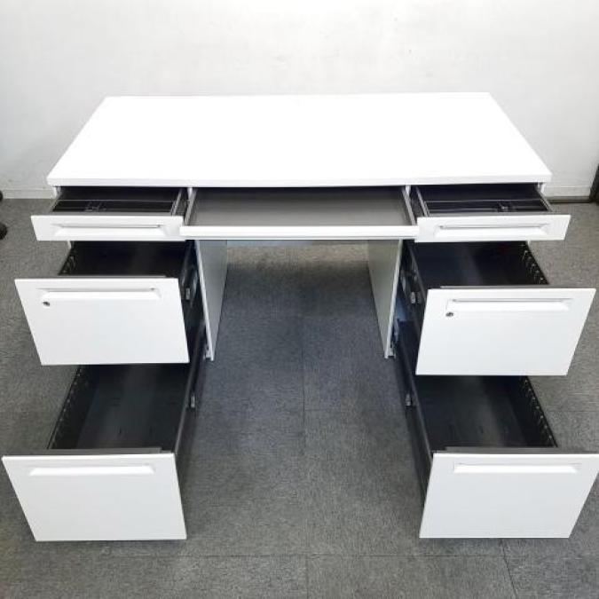 【両袖机なので収納が沢山!鍵付引出しが2か所で安心!役員用にオススメ!】■オカムラ製 アドバンス 両袖机 引出し:右4段 左3段 ■ホワイト ■シリンダー鍵