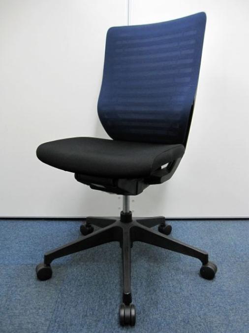 【操作レスな体重感応メカを搭載!!体格にマッチするエピオスチェア!】■イトーキ(ITOKI)製 エピオスチェア 肘無し ハイバック ■背面メッシュ:ネイビーブルー 座面クロス:ブラック
