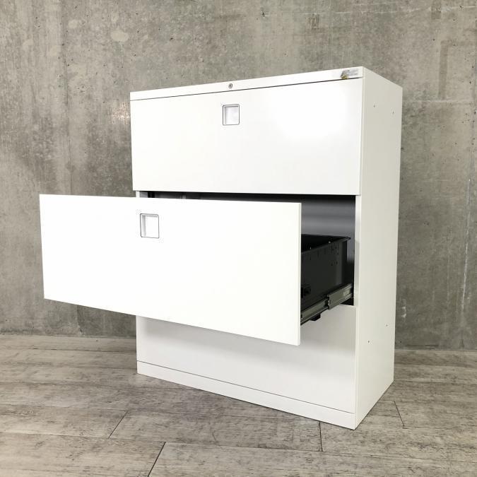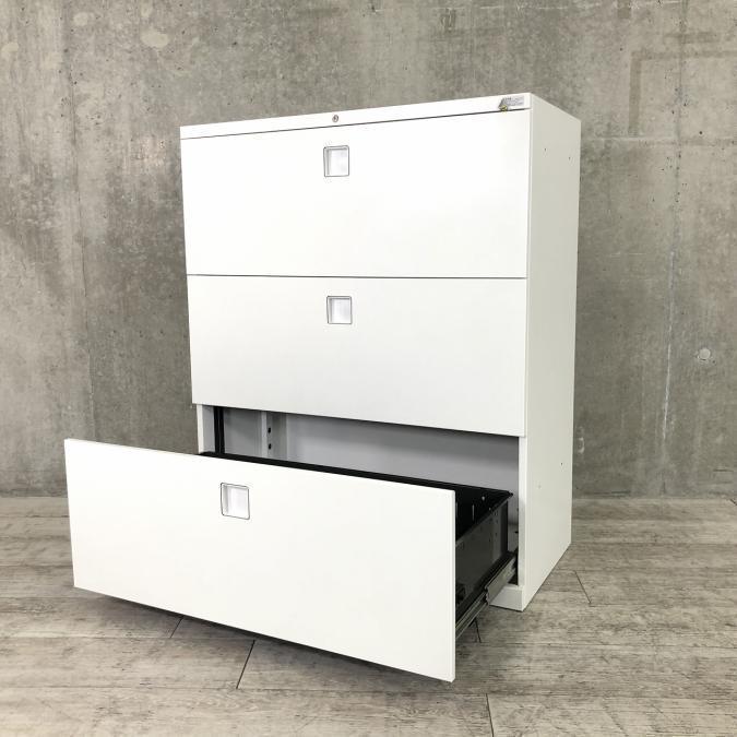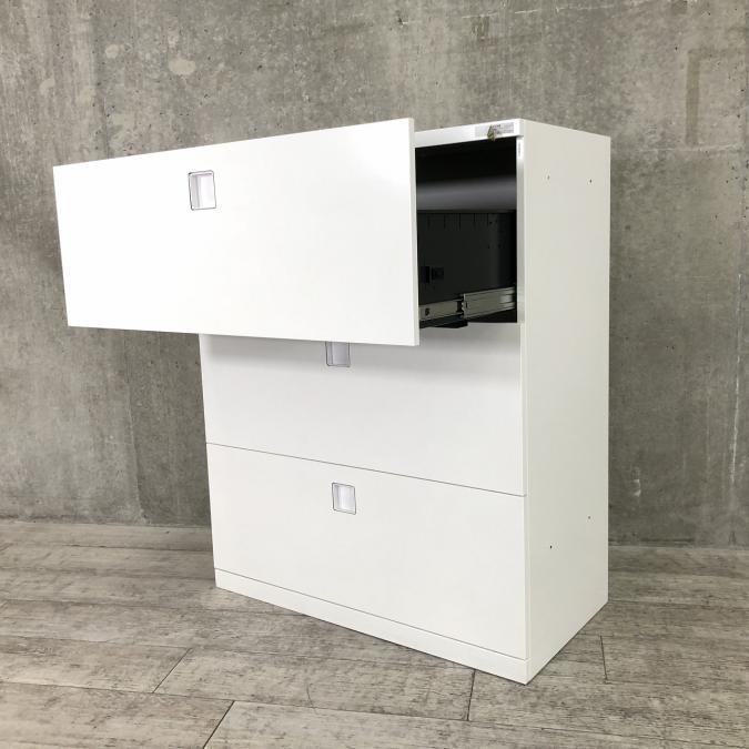 【高品質で使いやすい!上下左右から開閉操作できる!】■オカムラ レクトラインシリーズ 3段ラテラル書庫 ホワイト天板付 ■ファイル収納にオススメ!引出し型キャビネット【Okamura Rectline】