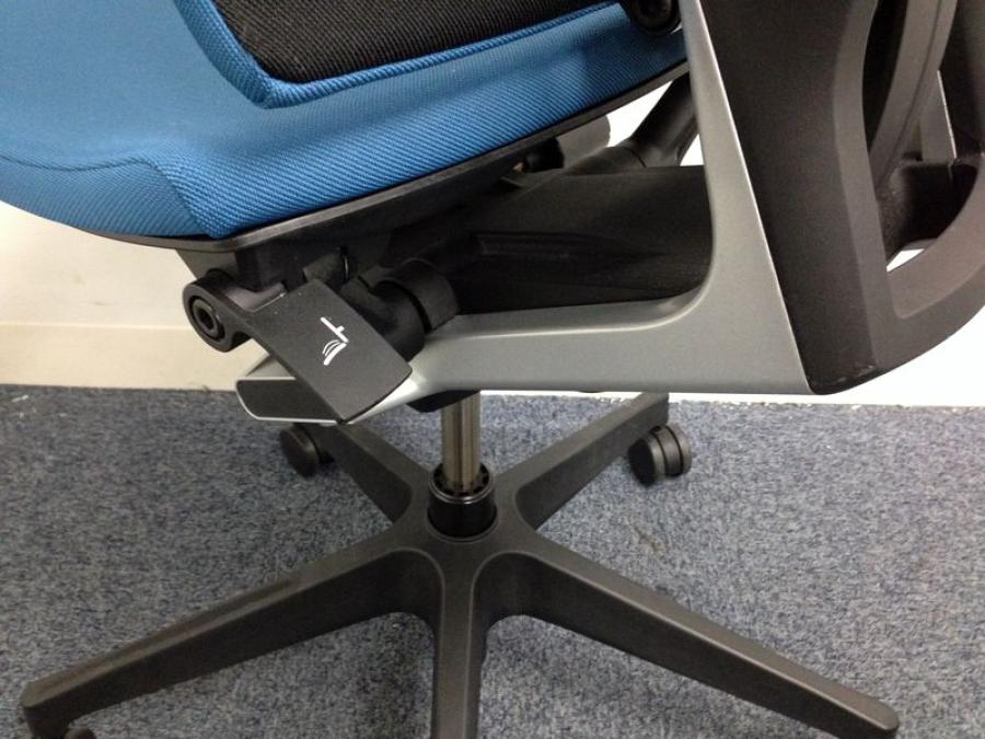 - ロッキングの後傾角度の範囲を、初期固定/10°/20°の3段階に調節可能。 簡単なレバー操作で、仕事の内容に合わせ手軽に調節できます。