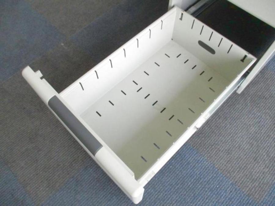 片袖机の為、右側には引き出しが付いており書類や筆記用具等も収納可能。