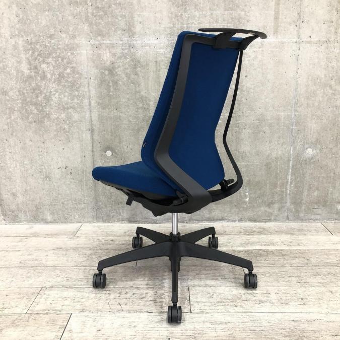 【在庫入替セール】コクヨ デュオラ 肘無しモデル クッションタイプ ブルー×ブラックフレームの定番のカラーリング コートハンガー付き ※背もたれに破れ有り【T9】
