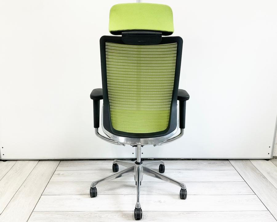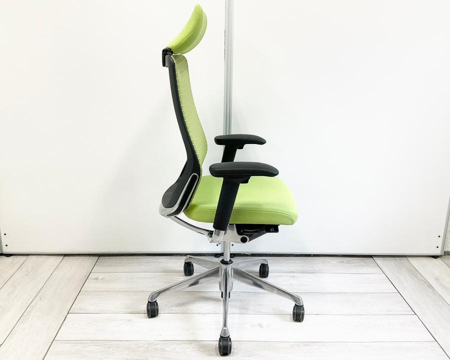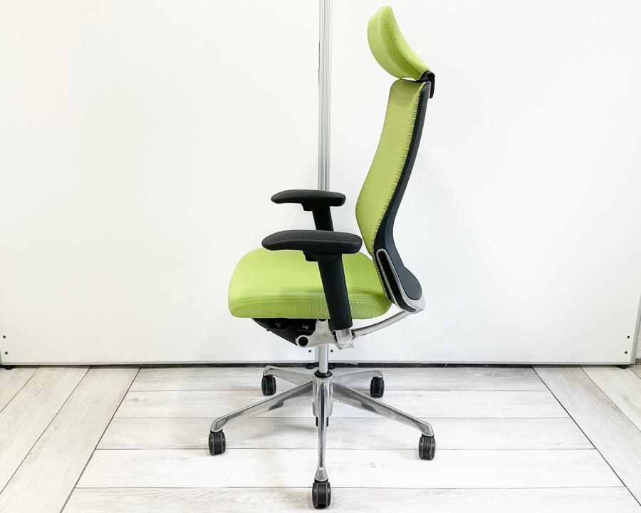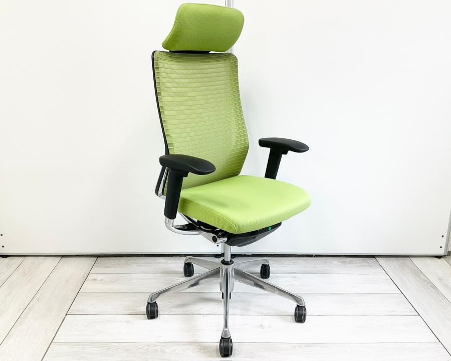 【ヘッドレスト付きならコレ!厚めのクッションで快適な座り心地を実現!】■オカムラ(okamura)製 コーラル(choral)チェア ■エクストラハイバック ■ヘッドレスト付き ■背メッシュ ■グリーン ■デザインアーム〈岐阜・愛知・三重・静岡・福井〉