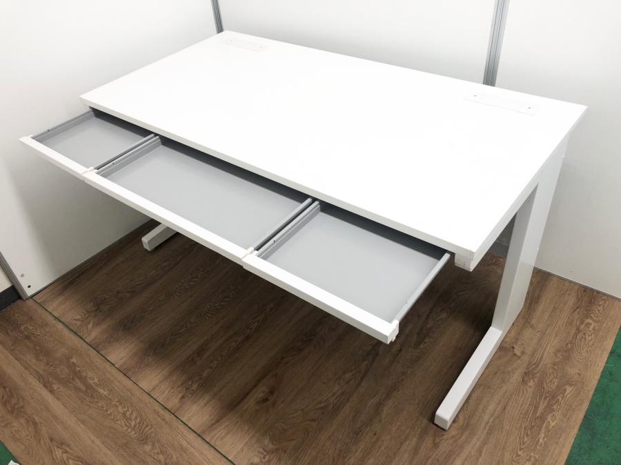 【幅1400㎜で図面などの書類も広げやすい!技術が詰め込まれたホワイトカラーの平机】■イナバ(inaba) デュエナ(DuENA)シリーズ 平机 引き出し付き W1400㎜ ■ホワイト〈岐阜・愛知・三重・静岡・福井〉