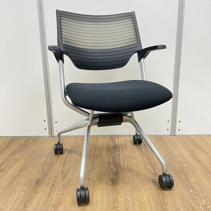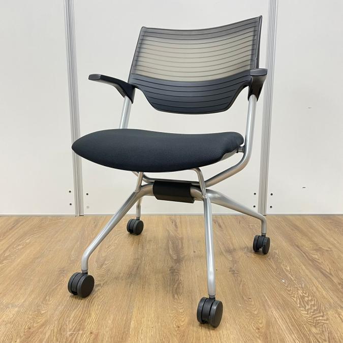 【商品入替のため、店頭在庫限り】【4脚セット】イトーキ製 レクシブシリーズ ブラックカラー 肘付き ネスティングチェア!!- 京都東寺店