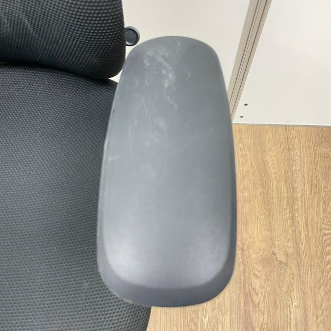 【商品入替のため、在庫限り】オカムラ製 シルフィーシリーズ 人気のブラックカラー 可動肘 樹脂脚 背もたれクロスタイプ 肘付きローバックチェア!!- 京都東寺店