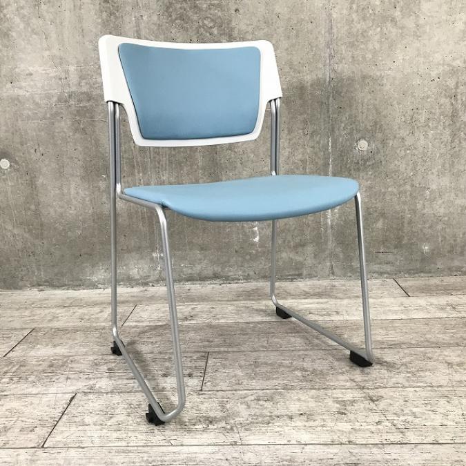 【お買い得品】【商品入替のため、在庫限り】イトーキ製 エレックシリーズ ビニールレザー仕様 ブルー スタッキングチェア!!- 京都東寺店