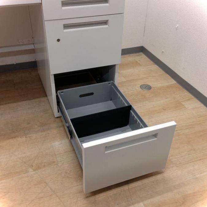 デスクサイドには、3段の収納付きなので、
