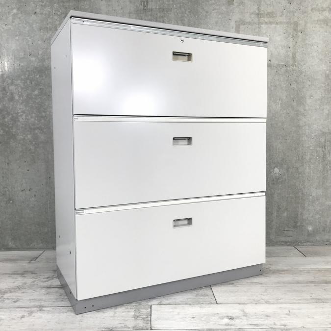 【4台限定在庫入替セール品】イトーキ製の定番書庫!人気の引き出し(ラテラル)タイプになります! イトーキ シンライン ホワイトグレー 3段ラテラル 天板付き