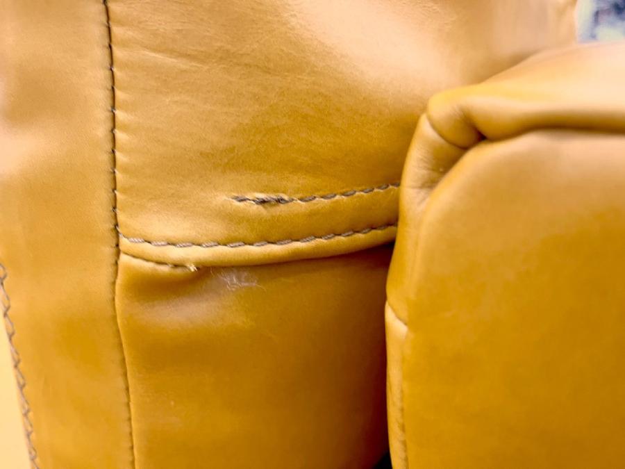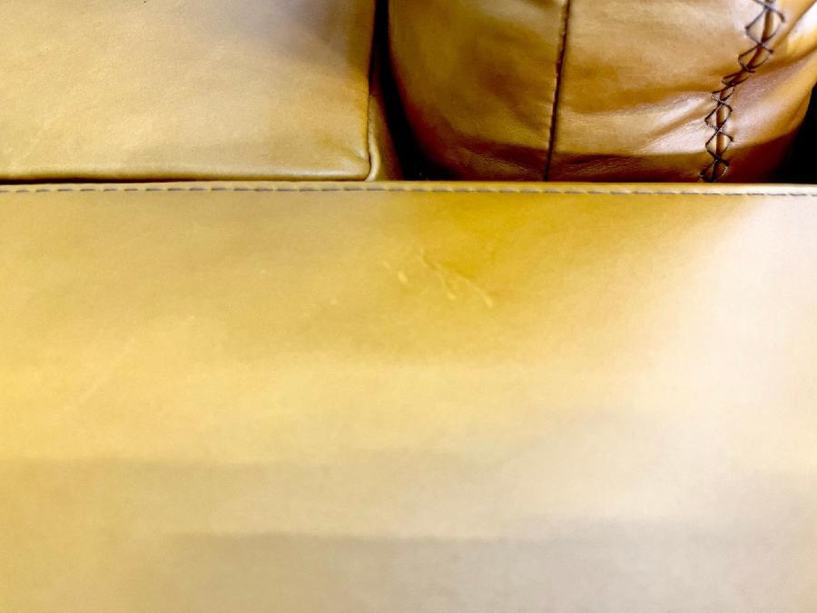 - あり黄ばみ・変色が広い範囲にうっすらある、または濃い黄ばみ・変色が一部ある。(例、座面・背もたれ、脚部等にある。)