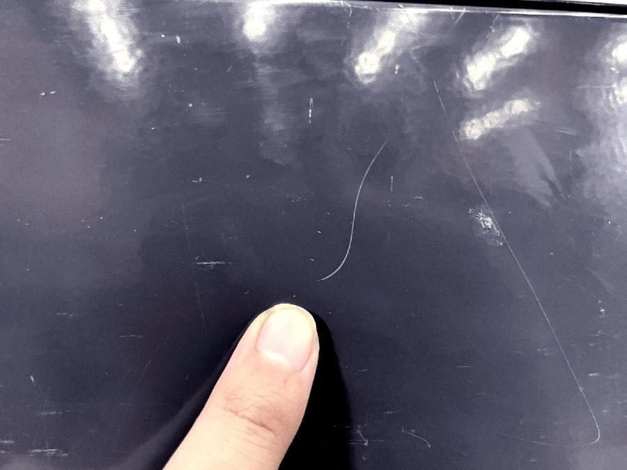 - 目立つ箇所あり傷・凹みが多数、深い傷・凹みが一部ある。(例、天板、正面、背部、サイド部分にある。)