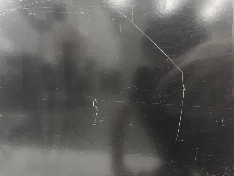 - 目立つ箇所複数あり深い傷・凹みが商品全体にある。(例、天板、正面、背部、サイド部分にある。)