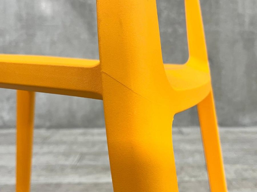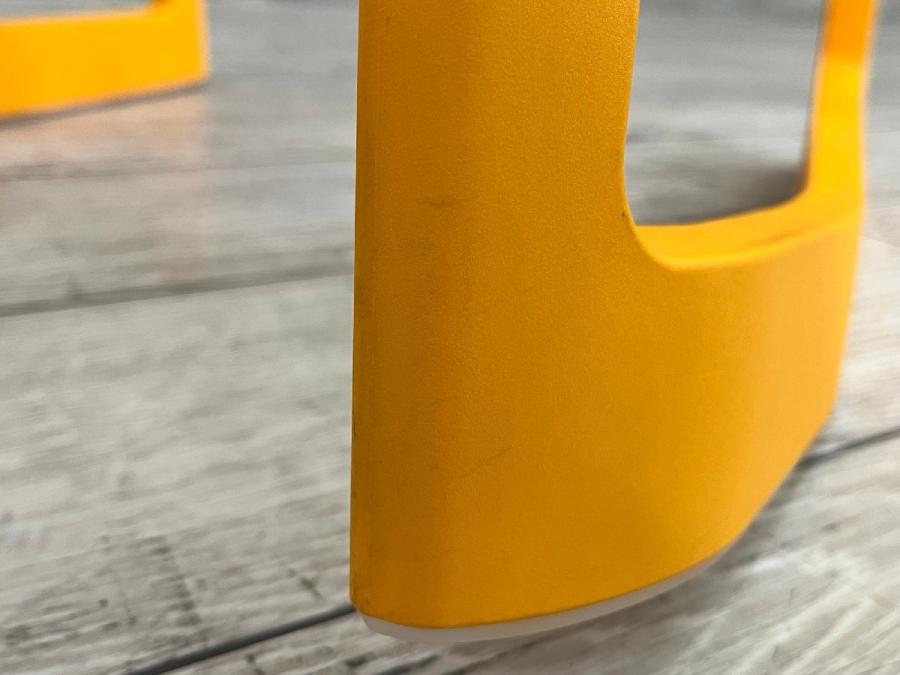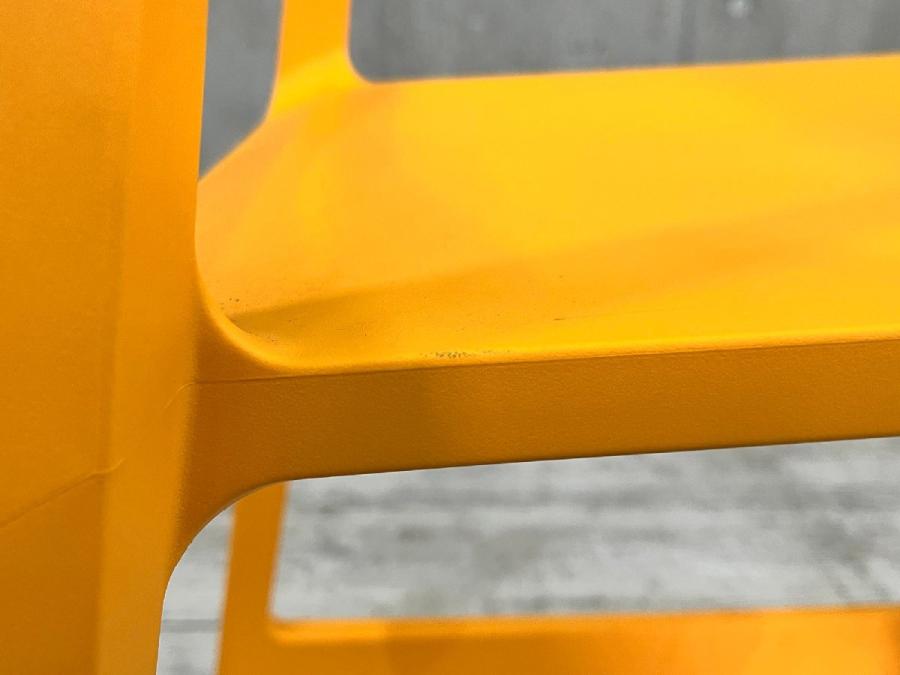 - かなり強い濃い黄ばみ・変色が商品全体にある。(例、座面・背もたれ、脚部等にある。)