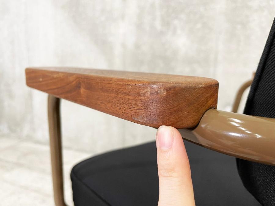 クラシックな風格を備えつつ、スチールパイプとファブリック、木製のアームレストなど、異素材の組み合わせが新しくも感じるタイムレスなデザインです。