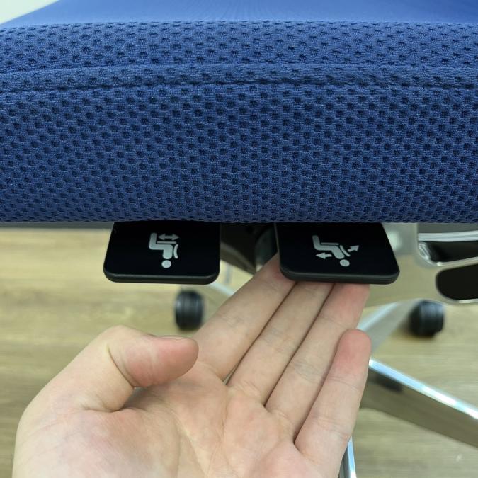 座面の高さ調整、座面のスライド調整の操作を、すべて座面の裏側に集約。