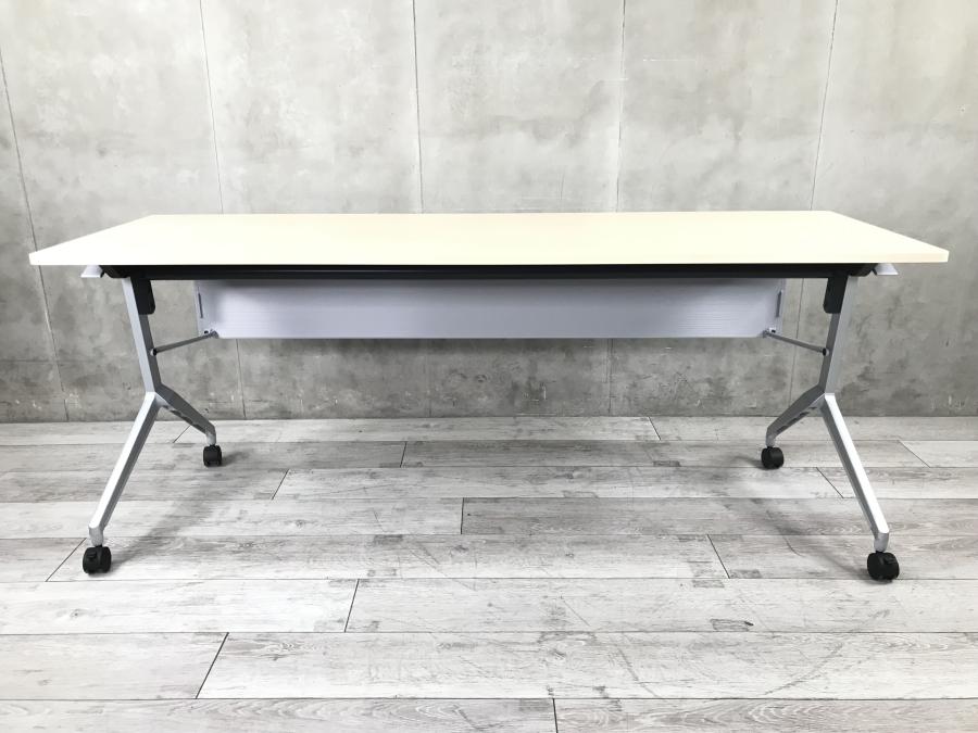 【会議室の必須品!】コクヨ(KOKUYO)リーフラインシリーズ スタックテーブル 幅1800㎜ ■色:ナチュラル 幕板付きフォールディングテーブル【RP】- 埼玉本店