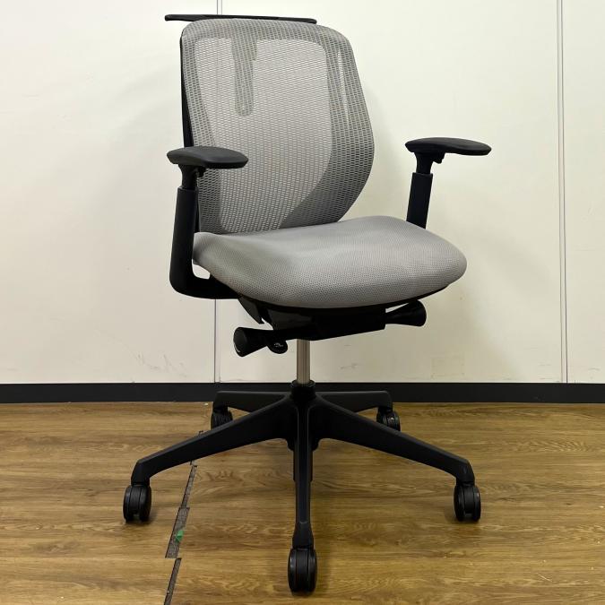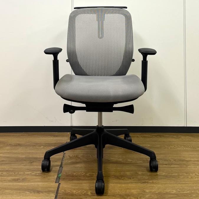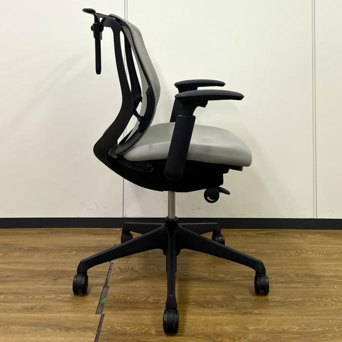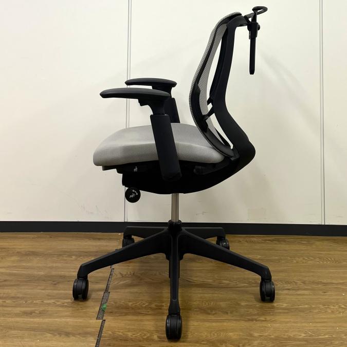 【前傾チルト機能付き】【オカムラ製品で最も人気を集める高機能メッシュチェア!】 ■オカムラ/シルフィーチェア(Sylphy)/ミディアムグレー × ブラックシェル 肘付き ローバック 背面メッシュ 固定肘