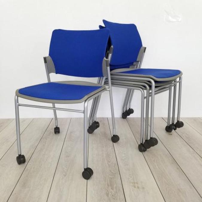 【9脚限定!!】オカムラのスタッキングチェア!中古 スタック ミーティング 会議 チェア 収納 オカムラ フォルマ ブルー- 豊中・尼崎店