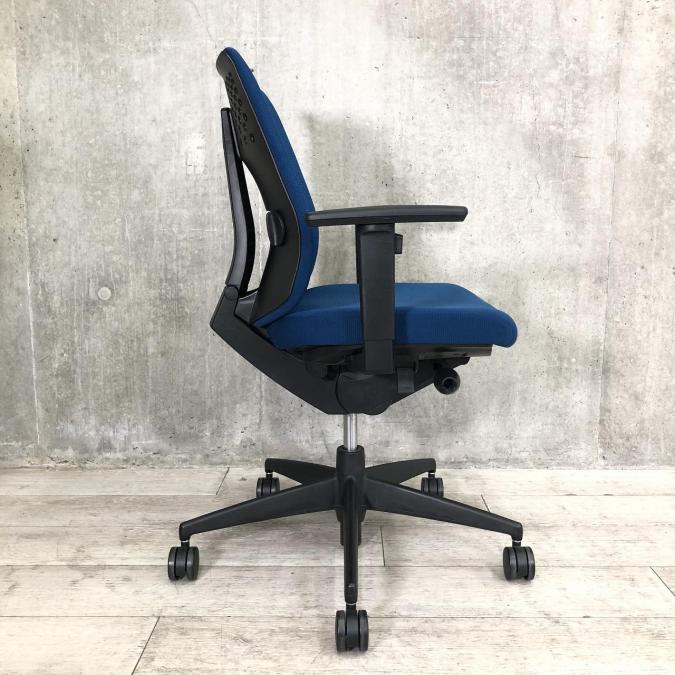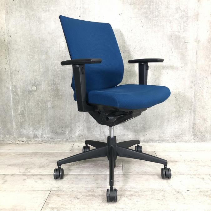 ■コクヨ(KOKUYO)製 ■ウィザード2(wizard2)チェア ■プルシアンブルー×ホワイトシェル ×ブラック脚 ■肘付ローバック ■固定肘・ランバーサポート付き 【弊社使用欄:A01048229 K】【ID】