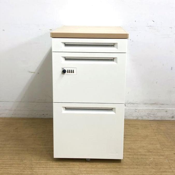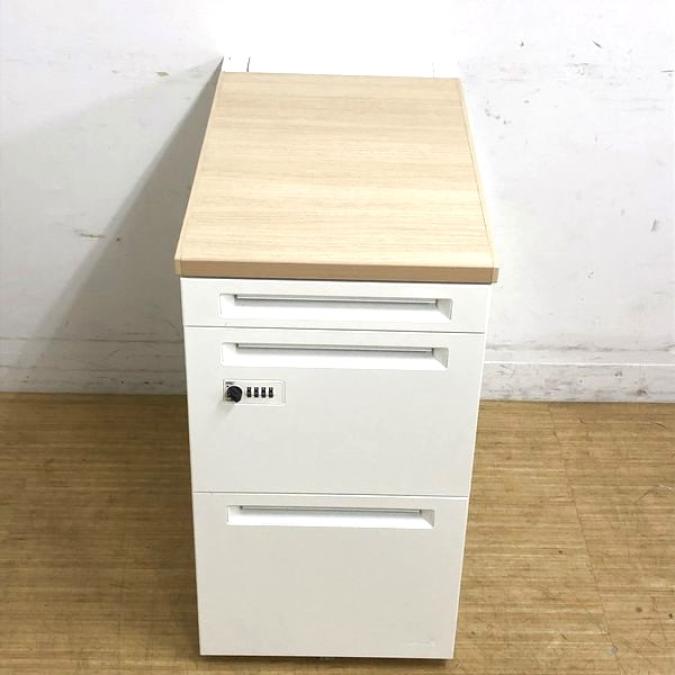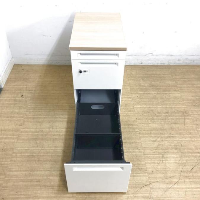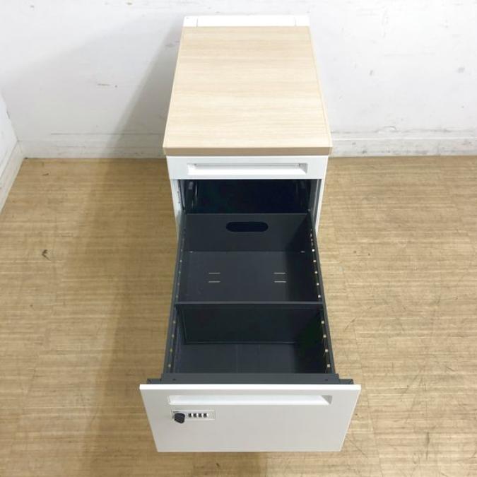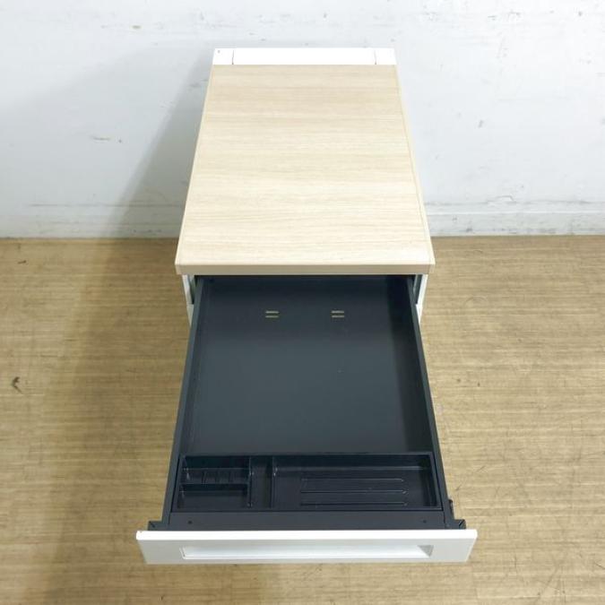 A4ファイル×2段 + ペントレーの3段収納 オカムラ アドバンス ホワイト 脇机3段 天板カラー:ネオウッドライト- 名古屋千種店