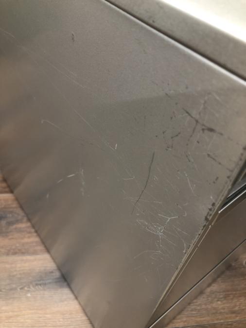 - 目立つ箇所あり傷・凹みが多数、深い傷・凹みが一部ある。(例、天板、正面、背後、サイド部分にある。)