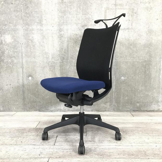 【在庫入替セール品】オカムラ(okamura)ヴィスコンテチェア ■色:ブルー(ブラックシェル)肘無し ハイバック仕様