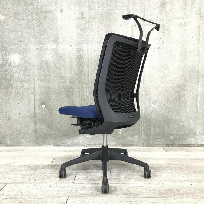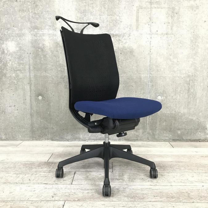 【ブルーとブラックのコントラスト!!】◆オカムラ/ヴィスコンテチェア/ブルー ◆ハンガー付/ハイバック 【弊社使用欄: A0093747】- 日本橋店