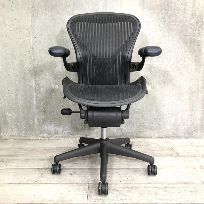 【スタイリッシュなデザインに快適な座り心地!】■ハーマンミラー アーロンチェア Bサイズ 固定肘 ランバーサポート無 ※キズあり・劣化ありのためお安く!【A01029474】