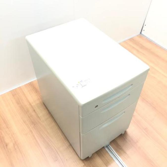 【大人気オカムラ製3段デスクワゴン!天板の把手とキャスターで移動がらくらく!デスク下に置いて収納力アップ!】■オカムラ(okamura)製 SDシリーズ 3段ワゴン デスクインワゴン H610㎜ ■ニューグレー ■シリンダー錠