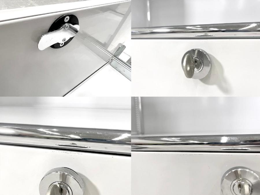 - 多数不具合あり引出の開閉不可、施錠不可、棚板無しといったその書庫の本来の効用を果たすための機能以外の多数が使用不可(例、扉、引出の開閉がしづらいなどがある。 )